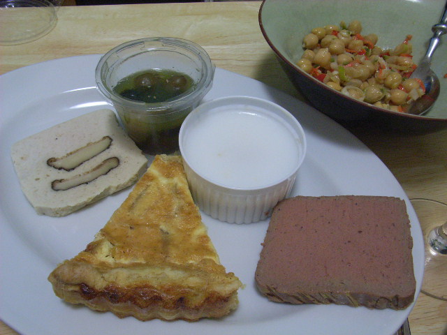ダーリンことフランス人シェフ・ロロさんのある日のディナー。フレンチレストラン&デリカ「マルシェ ロロ」をオープンする前はお休みの日などに本格フレンチを作ってくれたものでしたが(お陰で体重10キロ増!)、さすがオーナーシェフになると疲れるらしく、我家のディナーははっきり言って「デリカセット」。デリカのひよこまめのサラダ、キッシュ、鶏のテリーヌ、ロロさん特製オリーブ、ポークリエットなど。そして余ったパン。一つだけスペシャリティはめちゃくちゃ旨い「鶏レバーのテリーヌ」。なんとフォアグラのエキスを使って作るので、もうミミの大きなほっぺが落っこちます。たまにディナーの「本日のオードブル」に登場します。